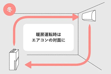さらに効果を高める方法として紹介されているのが、エアコンと空気清浄機の併用。エアコンの気流を利用し、空気清浄機を対面に設置することで、花粉を含む空気を効率よく吸引・循環させることができる。