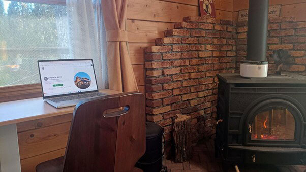 寒い冬は薪ストーブの隣でお仕事
