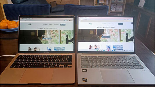 MacBook Air(左)とChromebook Plus Gen10を並べてみた
