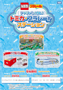 ビックカメラは、「ビックカメラ ラゾーナ川崎店」の1階おもちゃコーナーでトミカ・プラレールの巨大ジオラマ、トミカーリング、プラレールレイアウトパズルなどを体験できる「アソビがたくさん!トミカ・プラレールステーション」を2月14日・15日の2日間開催する。
