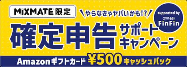 2月9日~3月16日の期間には、ライバー/クリエイターが「スマホ会計FinFin」を活用した確定申告を支援すべく、500円分のAmazonギフトカードをキャッシュバックする「確定申告サポートキャンペーン」を開催している。同キャンペーンは、ライブ&動画コミュニティ「MIXMATE」およびDONUTSから直接報酬や賞金を受け取っているライバー/クリエイターのうち、先着100名が対象となる。