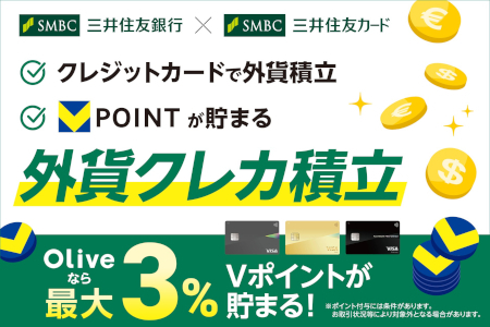 また、三井住友カードと三井住友銀行は、通貨分散を通じた資産形成の支援を強化する目的で国内初となるクレジットカード決済による外貨自動積立サービス「外貨クレカ積立」を開始した。対象は、三井住友銀行が提供する個人向け総合金融サービス「Olive」の「Oliveフレキシブルペイ(クレジットモード)」をはじめとする、三井住友カードが発行するクレジットカード。