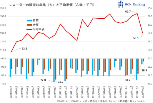 レコーダーの販売前年比と平均単価