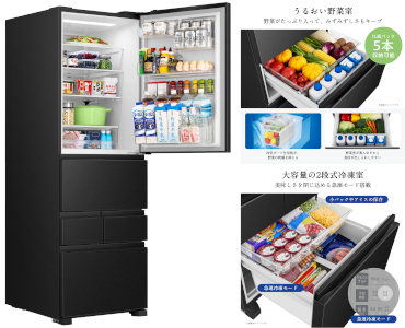 イオンの力で除菌・脱臭するHI-NANOα搭載により庫内に浮遊する菌の活動を抑制する。また、ボタン一つで微氷結とチルドの切り替えが可能なセレクトチルド室や野菜の鮮度を保持するうるおい野菜室、最大104Lの大容量を保存できる2段のたっぷり冷凍室を搭載している。