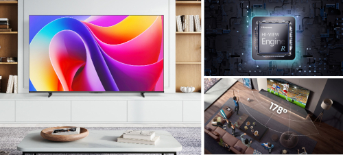 75A6はTVS REGZAと共同開発したHI-VIEWエンジン Rを搭載。地上波やBS/CS、ネット動画、ゲームなどコンテンツやシーンに最適な映像処理を行い、高精細で高画質の映像を楽しむことができる。
