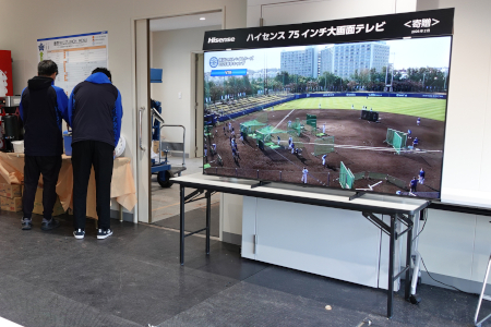 ファームの嘉手納キャンプでは、26年から二軍監督に就任した村田修一監督に75V型の大画面テレビ75A6Rが渡された。同キャンプではファームの選手が75A6Rに映し出された一軍選手のキャンプの様子や試合映像を見て、モチベーションアップや技術向上に役立つよう、選手が集う食堂に設置された。