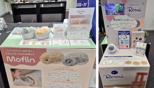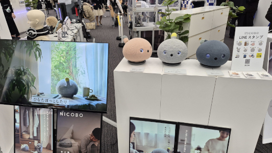 MIRAI ROBO SQUAREは、ショールーム全体が6つのコーナーに分けられている。エントランスを抜けると各社のコミュニケーションロボットが展示されており、その奥はGROOVE Xの家族型ロボット「LOVOT」のコーナーになっている。コミュニケーションロボットは文字どおり、発話や本体の動作を通して人とコミュニケーションをとる。ロボットといっても見た目はぬいぐるみのようで、最新の技術によって実は感情表現も豊かなのだ。