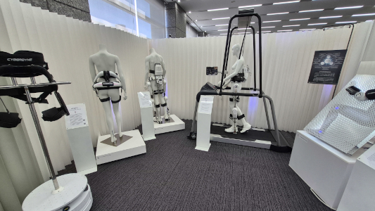 また、医療においては装着者が筋肉を動かす電気信号を読み取り、装着者の活動をアシストするというロボット技術を生かした製品も展示している。
