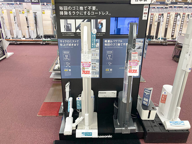 店頭なら実機を試せます。回転ブラシの自走機能による軽い操作感は、チェックしておきたいポイントです。