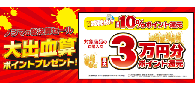 ノジマ「減税級! 大出血算(決算)セール」