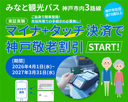 【家電コンサルのお得な話・290】 神戸市でコミュニティバスを運行するみなと観光バスなど4社が、マイナンバーカードとクレジットカードなどの「タッチ決済」を組み合わせた敬老割引サービスの実証実験を実施する。公共交通の敬老割引にマイナンバーカードを連携させた取り組みとしては全国初という。