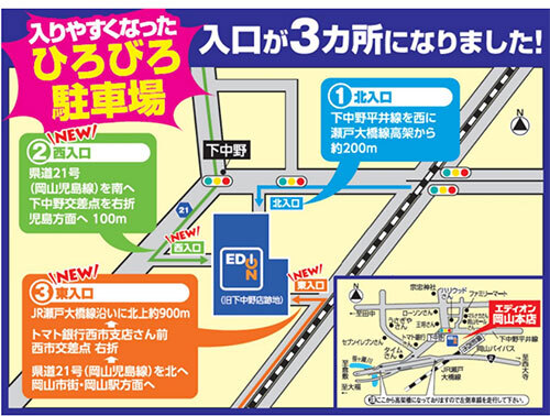 所在地は岡山県岡山市北区下中野441、駐車場台数は381。