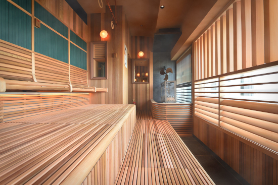 内装すべてに「生命の木」とも呼ばれるウェスタンレッドシダーを使用し、熱を帯びることで解き放たれるスパイシーな芳香が都会の喧騒を忘れさせ、深いリフレッシュへと導いてくれる。