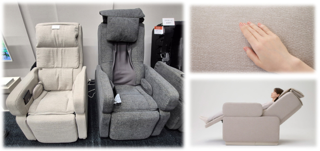 また、マッサージチェアでありながらも腰かけたときの心地よさを追求したという。通常時は背もたれを立てておくと、電動リクライニングチェアとして使用可能。ツイード調ファブリックとインテリアにマッチする色調などは、スタイリッシュなチェアそのものといえるだろう。
