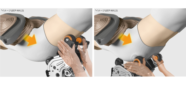 腰周りやおしり周りのマッサージでは、エアーバッグの加圧ともみ玉によって腰周りのコリやおしりの深部までほぐす。