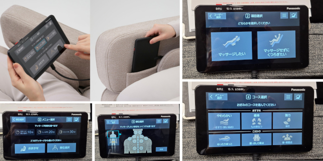 操作は付属のタッチパネルで行う。メニューに従って10分、20分、30分のマッサージ時間を選び、おまかせか部位を選択して、マッサージの強度などを選ぶとセンサーが肩の位置を検知して動作がスタートする。ユーザー登録で好みの設定を記憶することもできるので、毎回設定する手間が省けて非常に便利だ。