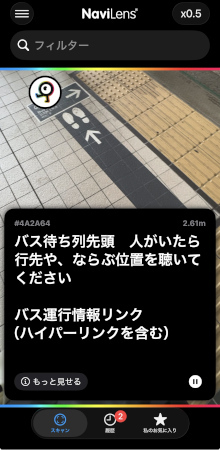 「ナビレンス」は、各所に貼られているアクセシブルなナビレンスコードを読み込むと、目的地の内容・方向・距離といった案内が表示されるとともに、音声で読み上げてくれるスペイン発祥の移動支援アプリ。