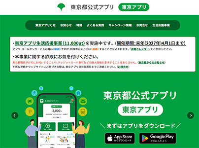 15歳以上を対象とした「東京アプリ生活応援事業」も実施中