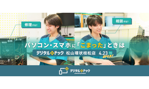 伊予鉄道の福音寺駅から徒歩10分というアクセスの良さに加え、駐車場も完備したドスパラ松山環状枝松店の店内に併設。PCや周辺機器の購入と合わせて修理や相談ができる点も、利用者にとっては安心だ。「デジタル機器で困ったら、まず立ち寄れる場所」として、地域のユーザーを支える拠点となりそうだ。