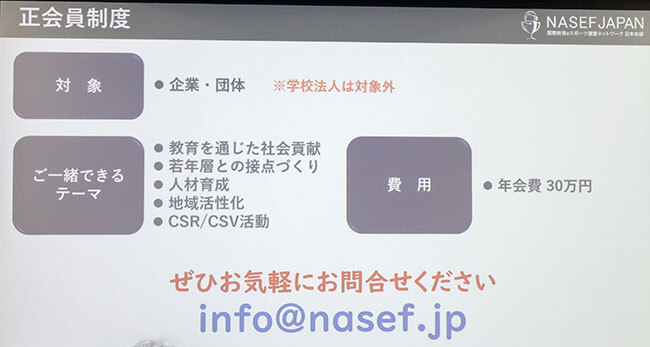 柿原理事長は新たな挑戦として、正会員制度のスタートと地方支部制度の発足を掲げた。「活動を持続可能なものにするために本格的に全国展開をしていきます。そのためには、我々の理念に共感していただける正会員の皆様方のご支援、サポート、協業を通じて、人材育成の基盤を力強くつくっていきたいと思っています」と語った。