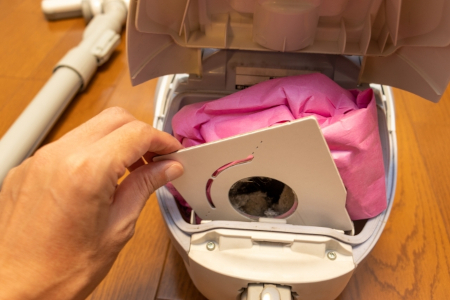 紙パック式は大きな紙パックを本体にセットし、その中にゴミを吸い込んだ空気ごと集める方式です。ゴミが溜まっても紙パックを交換するだけなのでお手入れが楽なことが特徴。また、比較的安価なモデルでの採用が多いことも魅力です。デメリットはゴミが溜まると吸引力が落ちてしまうことと、紙パックを購入する必要があることです。