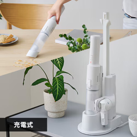 ハンディ型は、スティック型をより縮めたような小型の掃除機。スティック型以上に取り回しが良く、床だけでなくものが多い机上やテレビ裏、窓のサッシといった細かく狭い場所の掃除ができます。しかし、充電が必要になる点はスティック型と変わらないほか、上記のタイプの中で吸引力は最も弱く、広い面積の掃除は苦手としています。