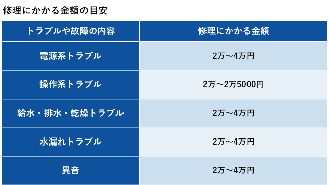 以下では、パナソニックを例に不具合ごとの修理費用の目安を見てみましょう。