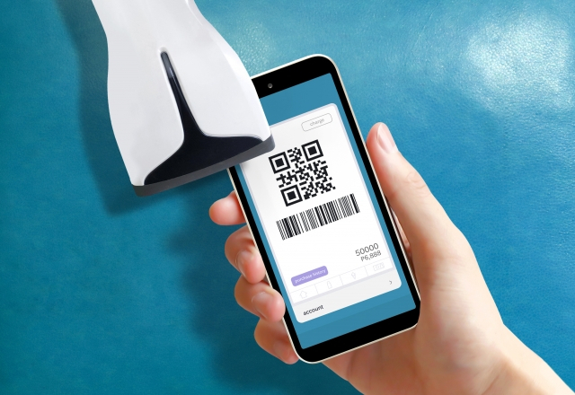 スマート払いの設定がうまくいったかどうかは、バーコード背景の色で確認できます。バーコードの背景色が青色になっていれば、設定ができている証拠です。