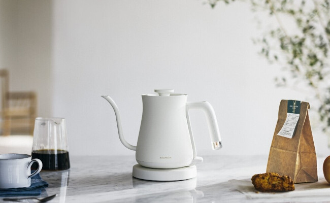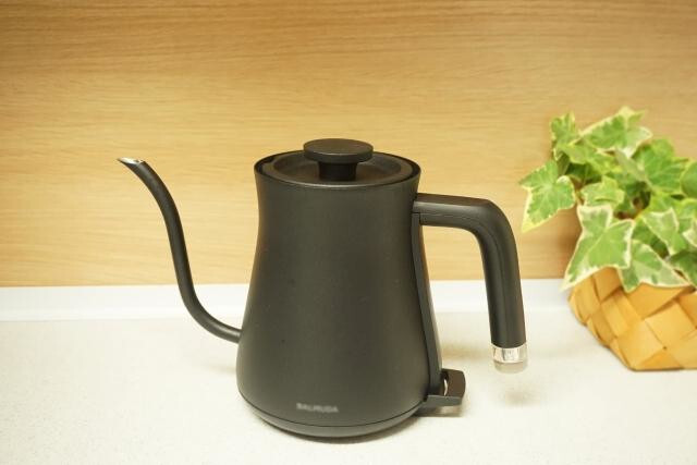 バルミューダの「BALMUDA The Pot」は、美しいデザインと高い機能性が特徴の電気ケトル。0.6リットルというスペースを取らず、かさばらないサイズで、1~2人分のコーヒーや紅茶をいれるのにピッタリ。注ぎ口が細く設計されており、湯量をコントロールしやすいため、ドリップコーヒーを淹れる際にも重宝します。キッチンのインテリアや家電のデザインにこだわっている人にとってはぜひおすすめしたい製品です。