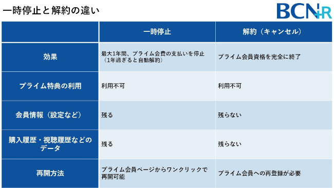 Amazonプライムには、完全に特典を終了する「解約(キャンセル)」と、一定期間だけ課金を止められる「会員資格の一時停止」という2つの手段があります。