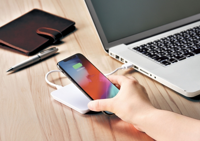 薄型でコンパクトなデザインは操作性が高く、充電中でもスマホを快適に扱えるのもうれしいポイント。1.5mのロングケーブルを備えているため、コンセントの位置を気にせず使えるのも便利です。