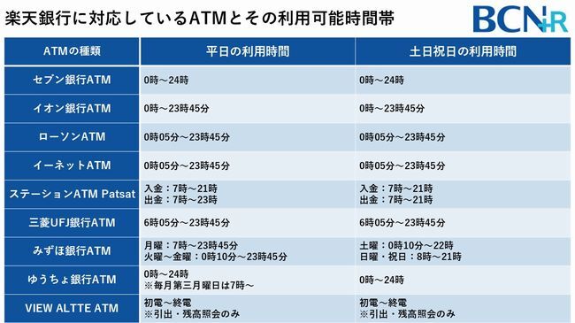 セブン銀行やイオン銀行、ローソン、ゆうちょ銀行など身近なATMから、24時間365日いつでも入出金できる環境が整っており、日常的な利用に困ることはほとんどありません。
