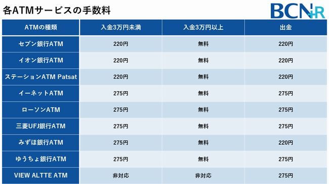 ※ATM手数料無料回数は、入金と出金を合わせた回数