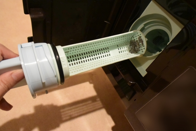排水フィルターを外す際は、大量の水があふれ出てくるのを防止するために、一度脱水運転をしておきましょう。