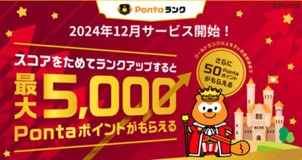Pontaランクとは2024年12月に新たに始まったPontaポイントのロイヤリティプログラム。毎月Ponta関連サービスを利用することでスコアを獲得することができ、スコアに応じて特典としてPontaポイントがもらえるというものです。
