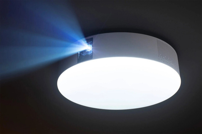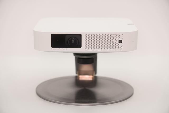 BenQ「GV31」は、カタツムリのような形が印象的なモバイルプロジェクターです。オートフォーカス、自動台形補正機能を搭載しているほか、投影角度を自由に調整できるため、レンズを上に向けて天井に投影することも可能です。
