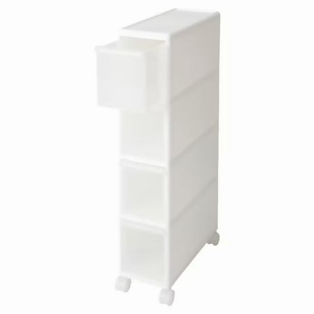 最後に、ちょっとした隙間を有効活用するための収納アイテムを紹介します。スリムすき間ストッカー 4段 幅17cm