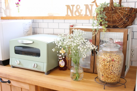 次に時短であること、これは先述したことと重なりますが、オーブンレンジなどの家電と一緒にトースターを置いておくと、同時に複数の料理を調理することができます。ちょっとした時間ですが、朝などの忙しいタイミングでは貴重な時間になります。