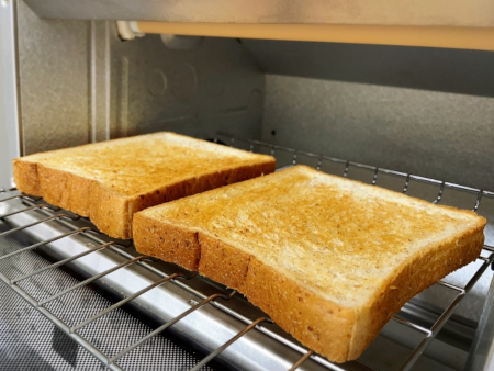 まず第一に、トースターは短時間で均一においしくトーストを焼き上げることができる点です。当たり前かもしれませんが、トースターはトースト向けに作られているため、トーストを作ることに相性がいい調理家電です。オーブンレンジの場合、予熱時間が必要であったり、フライパンの場合は焼き時間がかかったり、魚焼きグリルでは火力調整が難しかったりすることがあります。