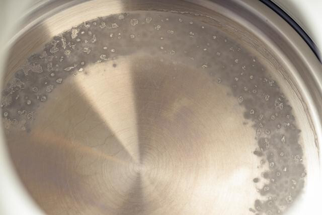 電気ケトルに入れられることが多い水道水やミネラルウォーターなどの水にはカルシウムなどのミネラル成分が含まれます。水を沸騰させたとき、これらの成分が底に溜まり、水垢として白っぽい汚れになっていくのです。フィルターなどが搭載されているケトルの場合、フィルターにも付着することがあります。