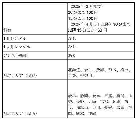 ただし、他のサービスと異なり、対応エリアは東京や九州の一部、愛知県(名古屋周辺)のみと狭めです。