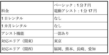 主要シェアサイクルの料金・サービス比較