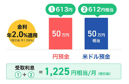 円・ドル預金を両方実施で金利が年2.0%にアップ