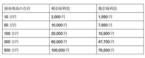 例えば、500万円預けると税金後でも79,500円もの利息がつくため、年に1回旅行にいけるくらいの金額になります。