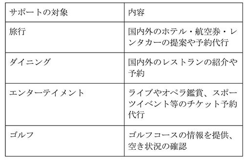 楽天ブラックカードで利用できるサポートについて、表でまとめました。