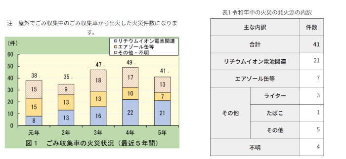 実際に、東京都をはじめとする各自治体や消防機関では、リチウムイオン電池が原因とみられるごみ処理施設・収集車の火災事例が多数報告されています。