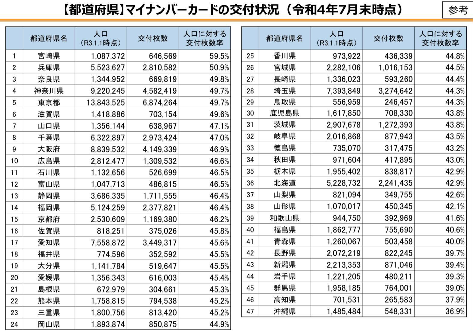 22年7月末時点のマイナンバーカード交付枚数率は45.9% 前月比0.6ポイント増