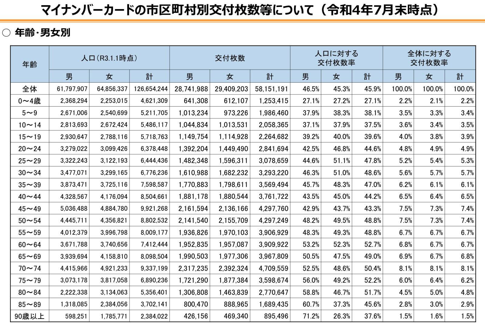 • 22年7月末時点のマイナンバーカード交付枚数率は45.9% 前月比0.6ポイント増