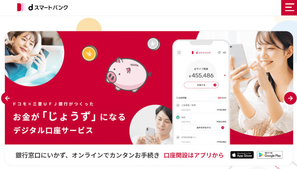 • ドコモと三菱UFJ銀行、dポイントがたまる口座サービス「dスマートバンク」