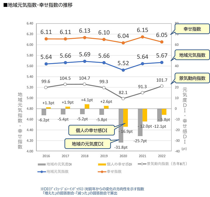 • 「元気指数」はコロナ禍前の最高値 でも「幸せ指数」は大幅低下